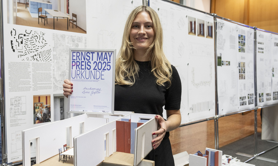 Katharina Lore Meyer hat den 17. Ernst-May-Preis (NHW Award Süd) gewonnen. Sie überzeugte die Jury mit ihrer Arbeit zu einem NHW-Hochhaus im Ben-Gurion-Ring in Frankfurt-Bonames und bekam dafür 3.000 Euro.